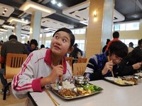 每天飯點(diǎn),我們學(xué)校的娃娃們都會(huì)朝著學(xué)校飯?zhí)靡粋€(gè)勁的沖,按照學(xué)生們的套路,是在打飯人不多的情況下,沖到飯?zhí)么翱诮o盛飯的大叔大媽們一個(gè)甜甜的笑容,盤子里就會(huì)多得一塊肉,飯?zhí)玫墓ぷ魅藛T和學(xué)生們相處的很融洽。